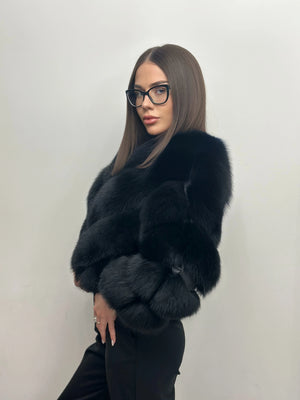Blană naturală de vulpe polară, cu volum bogat și textură densă, realizată din blană atent selecționată pentru un aspect elegant și uniform. Designul cu rânduri în formă de V oferă un efect sofisticat și alungește vizual silueta, în timp ce finisajul mătăsos asigură un confort termic superior. Croiala modernă evidențiază linia corpului, transformând această piesă într-o alegere ideală pentru ținute urbane de lux și apariții rafinate în sezonul rece.