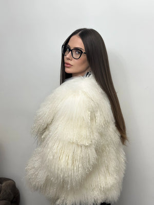Blană naturală din oaie mongoleză, cu textură bogată și fire lungi, mătăsoase, ce creează un efect spectaculos și sofisticat. Volumul generos și aspectul aerat conferă un look exclusivist, în timp ce croiala elegantă pune în valoare silueta. O piesă statement, ideală pentru apariții de lux, ținute speciale și un stil îndrăzneț, cu personalitate.
