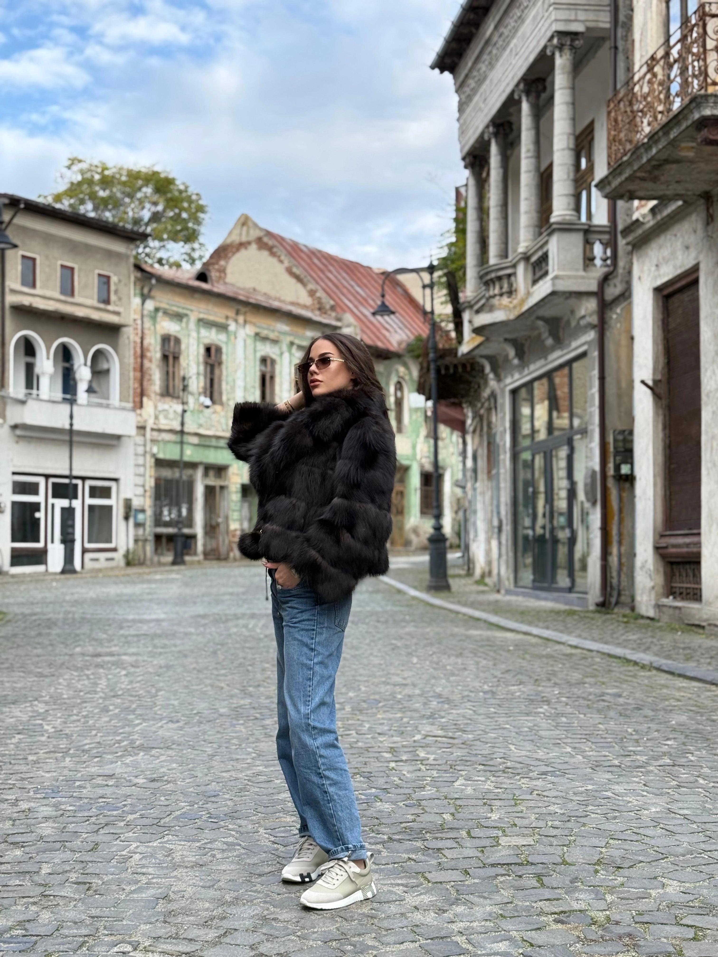 Haină scurtă din blană naturală de zibelină dark brown, cu textură extrem de fină și luciu profund, atent selecționată pentru un aspect exclusivist și sofisticat. Designul cu rever elegant adaugă rafinament și structură, în timp ce croiala modernă evidențiază silueta și oferă un echilibru perfect între confort și stil. O piesă statement, ideală pentru ținute urbane de lux și apariții elegante în sezonul rece.
