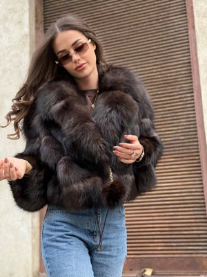 Haină scurtă din Blană Naturală de Zibelină Dark Brown