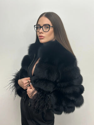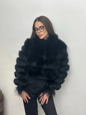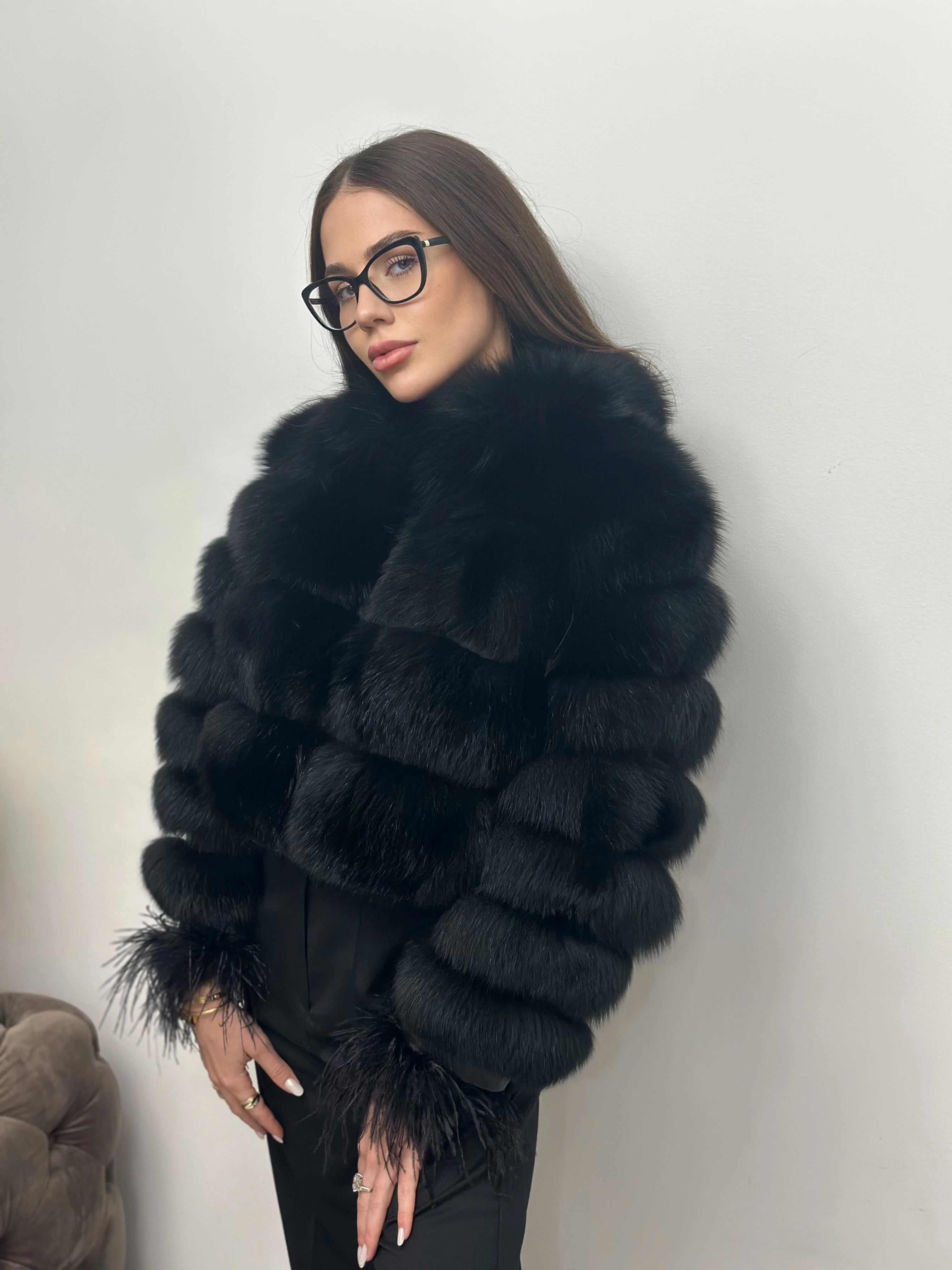Blană naturală de vulpe polară, cu volum bogat și textură densă, atent selecționată pentru un aspect elegant și sofisticat. Designul cu rânduri bine definite creează un efect vizual rafinat, iar finisajul mătăsos oferă un confort termic superior. Croiala modernă evidențiază silueta, iar detaliile fine de la manșete adaugă un plus de exclusivitate. O piesă statement, ideală pentru ținute de lux și apariții sofisticate în sezonul rece.